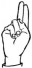 На ћирилици написано ДАНИЈЕЛ ПЕЛАГИЋ састоји се из 14 слова [?]. Исписано ћириличном једноручном азбуком за глувонеме: